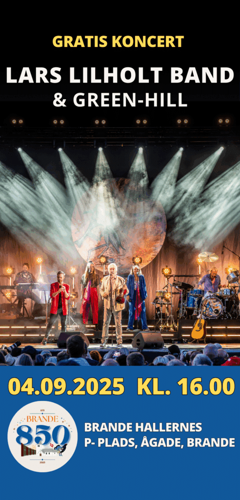 Torsdag den 4. september 2025 forvandles Brande til et festligt samlingspunkt med musik, fællesskab og oplevelser for hele familien. På scenen står Lars Lilholt Band og Green Hill – og vi lover, at stemningen bliver i top!